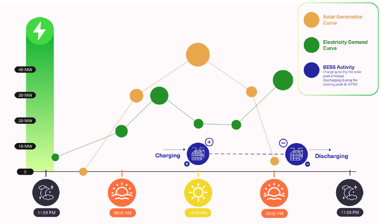 This is where a BESS comes in. It bridges the gap between supply and demand, storing excess energy when supply is high and delivering energy when demand exceeds available generation. In doing so, BESS helps make better use of renewable energy and supports a more stable, flexible electricity system.